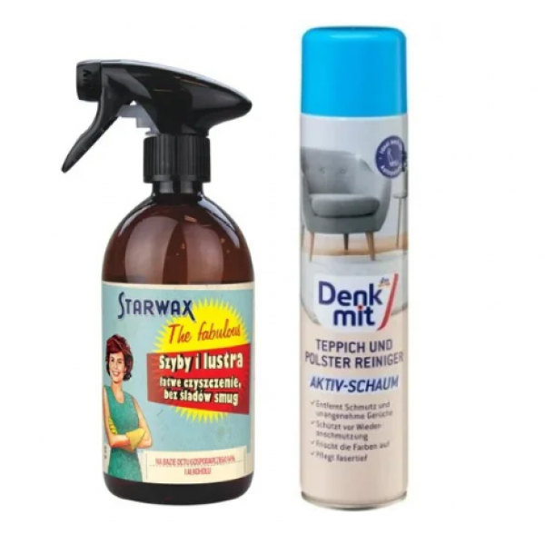 Цей набір створений для тих, хто хоче підтримувати чистоту в домі на професійному рівні без складних процесів. Поєднання спрею Denkmit для текстильних поверхонь і засобу Starwax The Fabulous для скла дозволяє легко доглядати за меблями, килимами та глянцевими поверхнями.