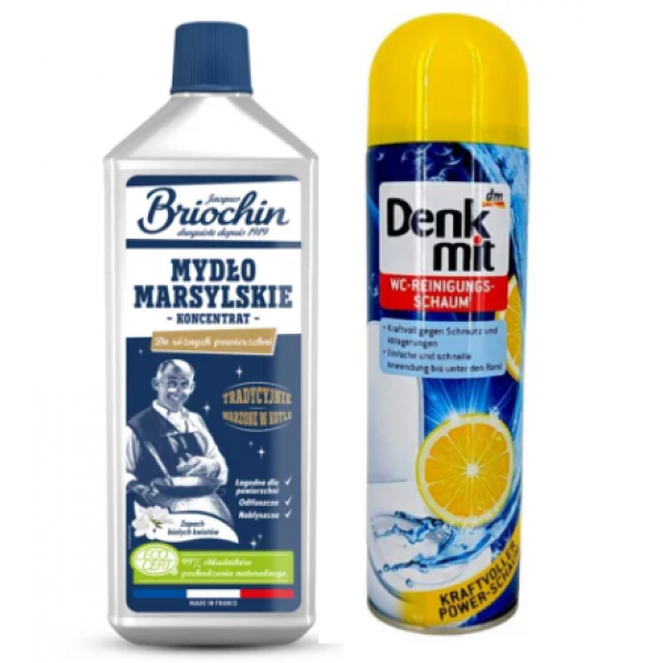 Піна для унітазу Denkmit WC Reinigungsschaum Zitrone 500 мл + Марсельське мило-концентрат Briochin 1 л — гігієнічна чистота санвузла та натуральний догляд за домом