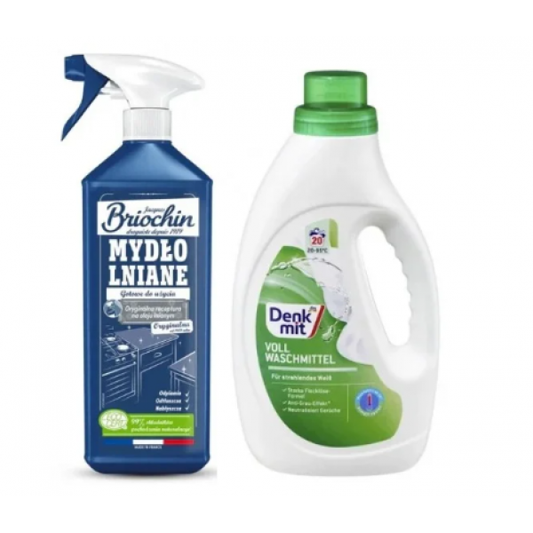 Рідкий миючий засіб для білого Denkmit 1,1 л + Лляне мило Briochin 750 мл — бездоганна білизна та натуральний догляд за речами і домом