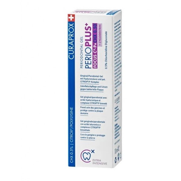 Гель Curaprox Perio Plus Focus с Citrox®, гиалуроновой кислотой и хлоргексидином 0,5%, 10 мл — интенсивное точечное действие при воспалении дёсен и уходе за имплантатами