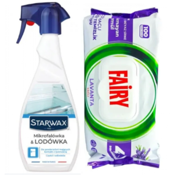 Набор Fairy + Starwax — это практичное решение для быстрой и удобной уборки во всём доме, особенно на кухне. Сочетание универсальных влажных салфеток и специализированного средства для техники позволяет поддерживать чистоту поверхностей без использования большого количества бытовой химии.