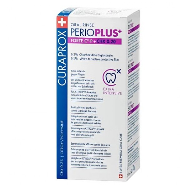 Ополаскиватель для полости рта Curaprox Perio Plus Forte — это профессиональное средство для интенсивного ухода за полостью рта в периоды, когда необходима максимальная антибактериальная защита. Формула содержит самую высокую концентрацию хлоргексидина в линейке Perio Plus — 0,20 %, что обеспечивает мощное действие против бактерий, вызывающих образование зубного налёта, воспаление дёсен и осложнения после стоматологических процедур.