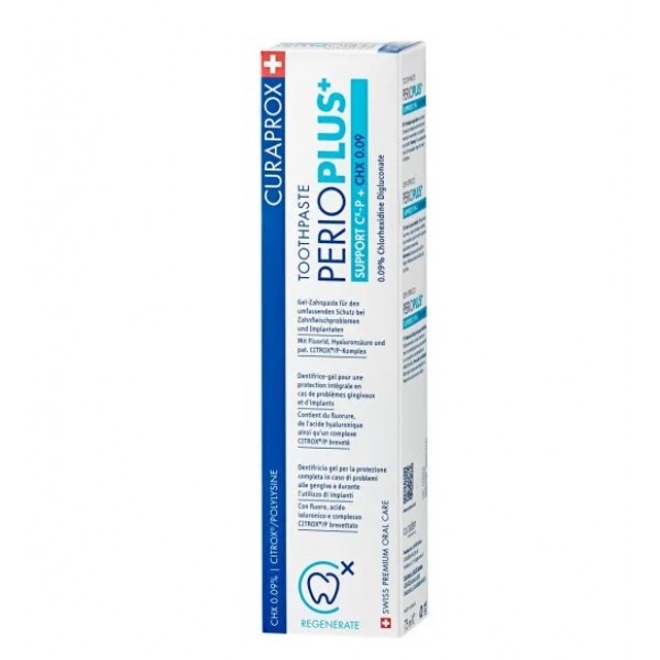 Curaprox Perio Plus Support — це спеціалізована лікувально-профілактична зубна паста, розроблена для людей із запаленнями ясен, кровоточивістю та захворюваннями тканин пародонта. Формула поєднує клінічно перевірений хлоргексидин у концентрації 0,09%, натуральний комплекс Citrox® та гіалуронову кислоту, забезпечуючи антисептичний захист, зменшення запалення та активне загоєння слизової оболонки ротової порожнини.
